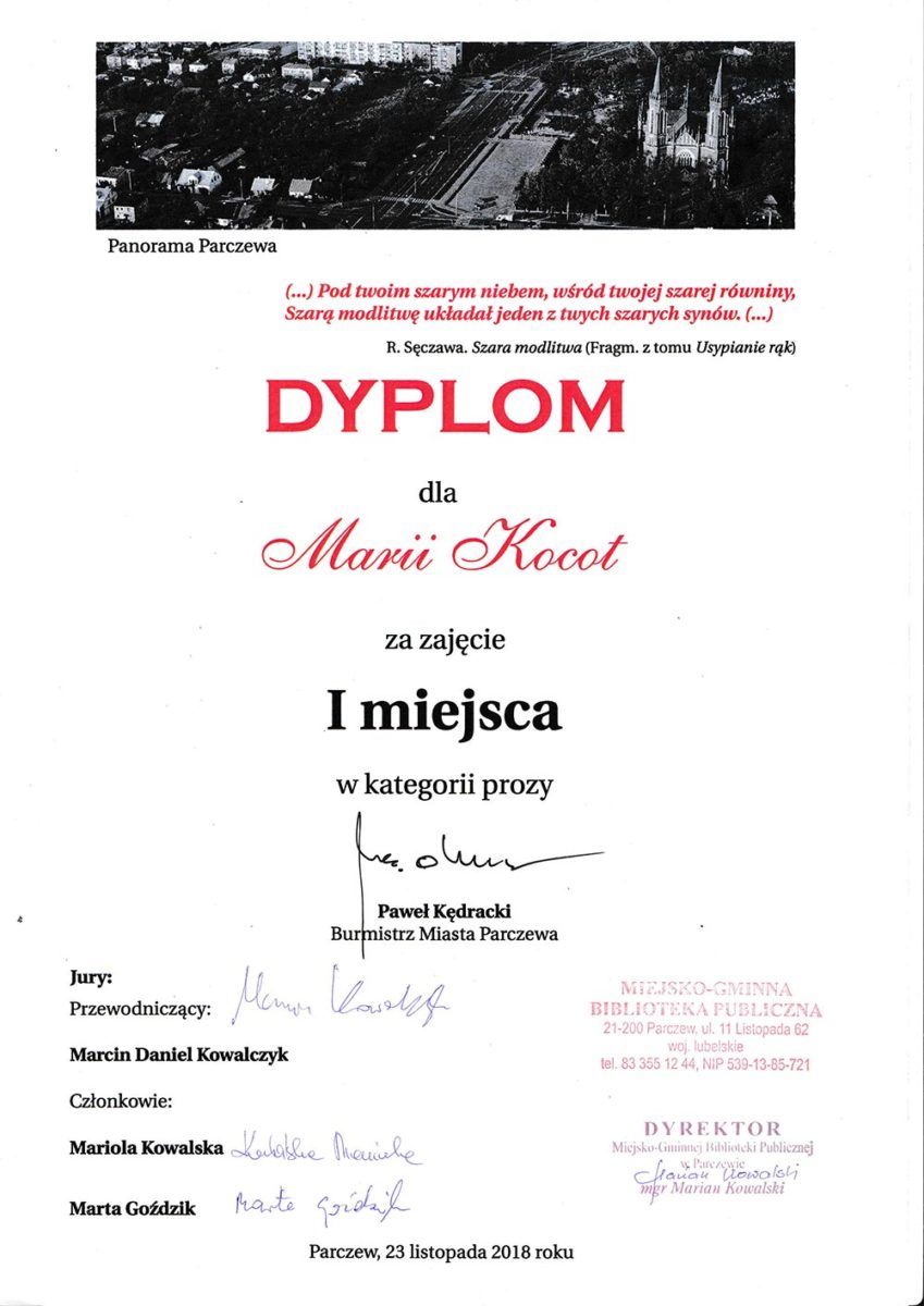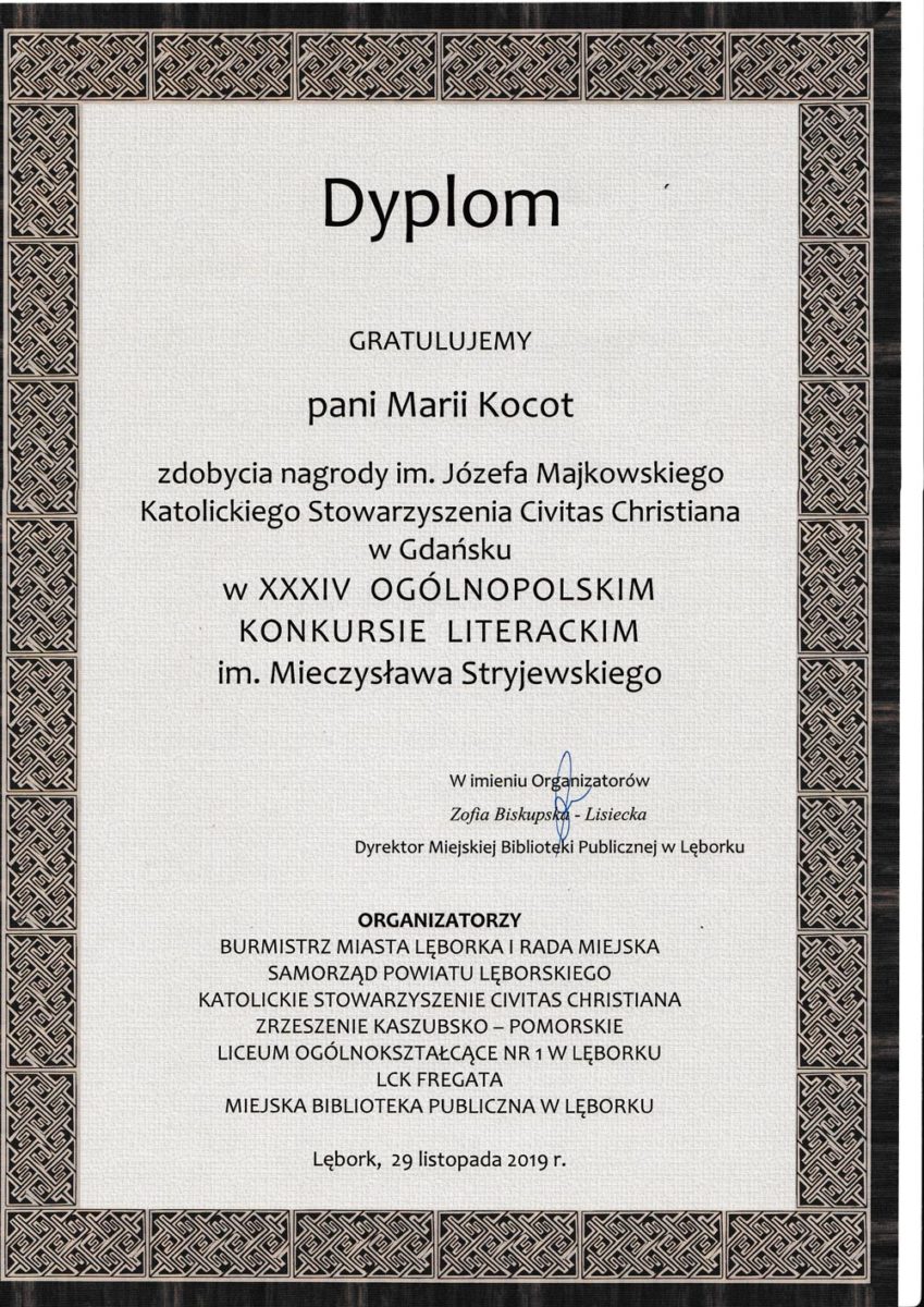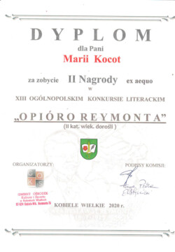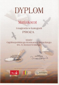 Laureat XXXIV Ogólnopolskiego Konkursu Literackiego im. J.I. Kraszewskiego