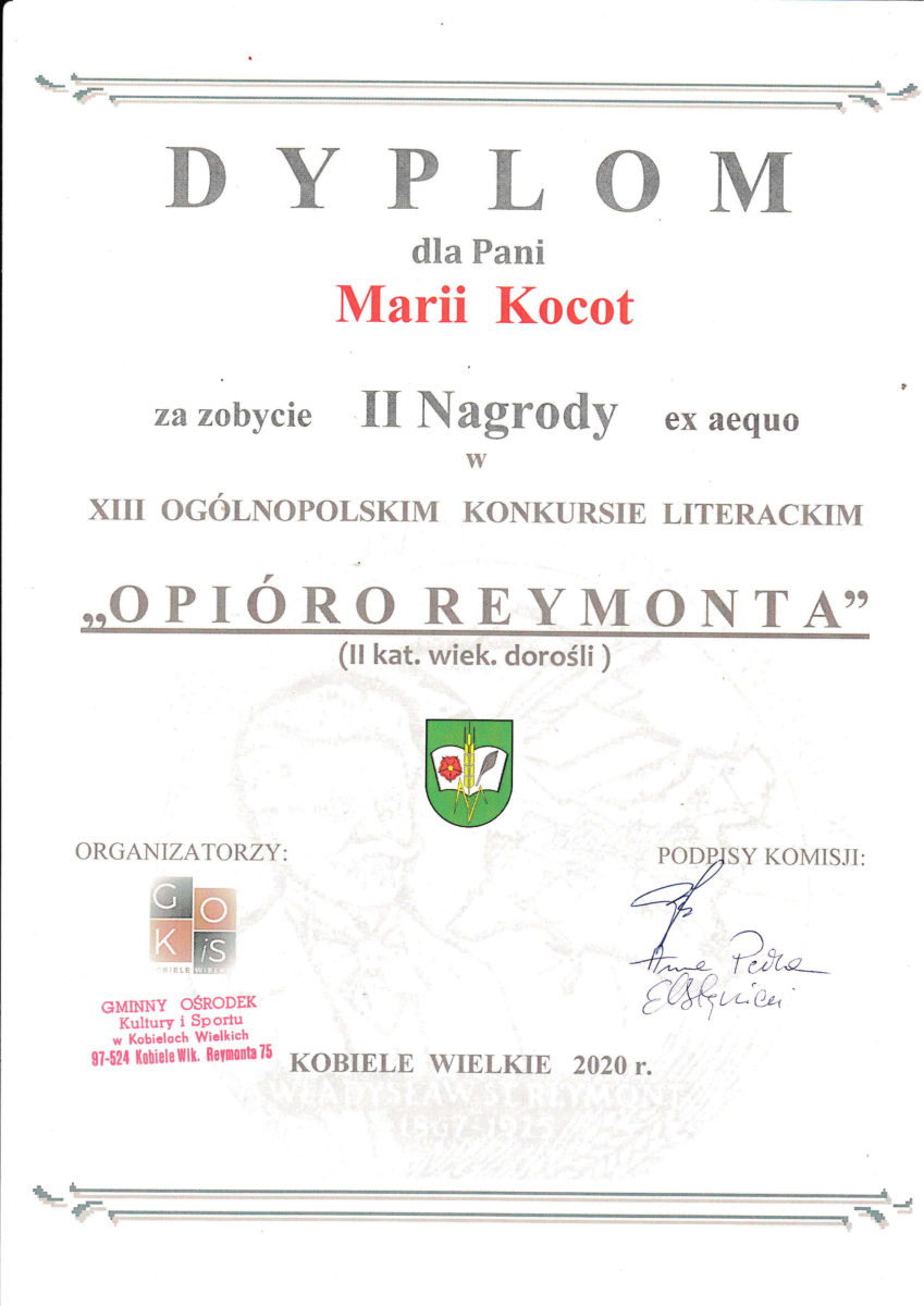 Laureat XIII Ogólnopolskiego konkursu Literackiego ,,O pióro Reymonta"