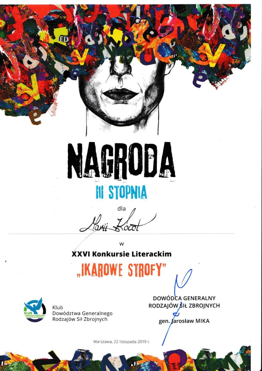 Laureat Ogólnopolskiego Konkursu Ikarowe Strofy