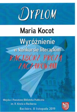 Laureat VI Ogólnopolskiego Konkursu Racibórz prozą zaczarowany 2019